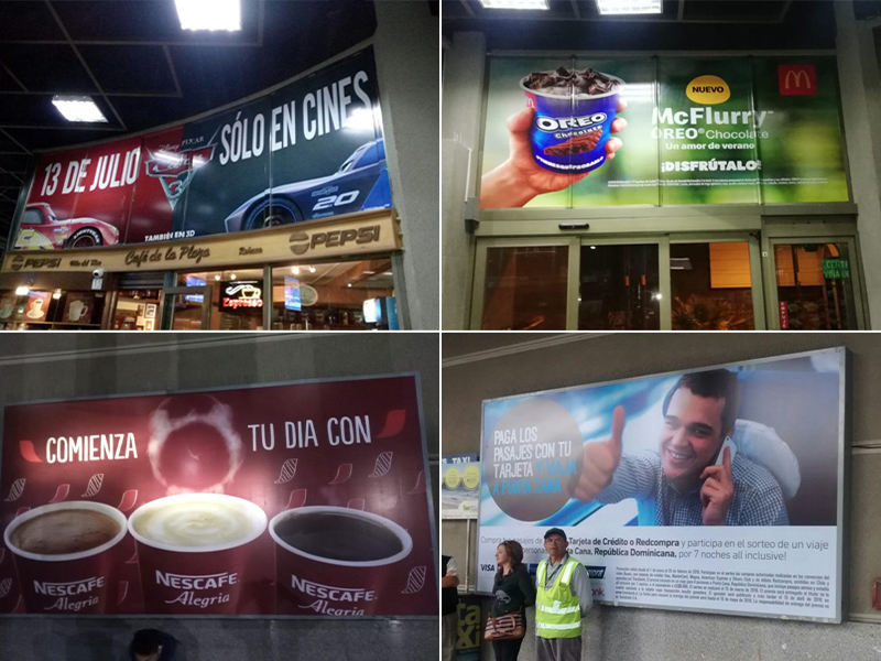 Pantalla led, unipole interior, ventanales, valla en andenes.