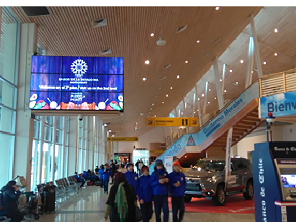 Pantalla Led, unipole exteriores, cajas de luz, ventanales, bastidores, carros portaequipajes, puentes de embarque, videowalls.